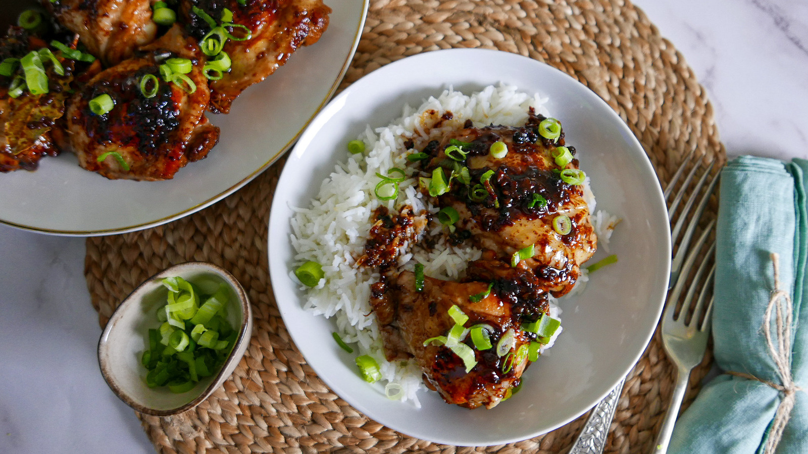 5. Подача. Готовое адобо посыпьте свежей зеленью. Лук и чеснок, пропитавшиеся соусом, становятся отдельным деликатесом. Сам соус получается насыщенным и ароматным, но при желании его можно немного уварить или слить лишний жир.