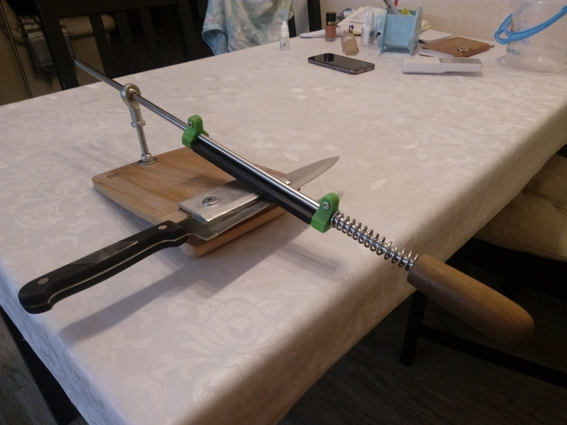 Вот что у меня получилось! Конструкция выглядит незамысловато, но отлично справляется со своей задачей. Ножи становятся острыми, пока кремний на колёсиках не сотрётся полностью.