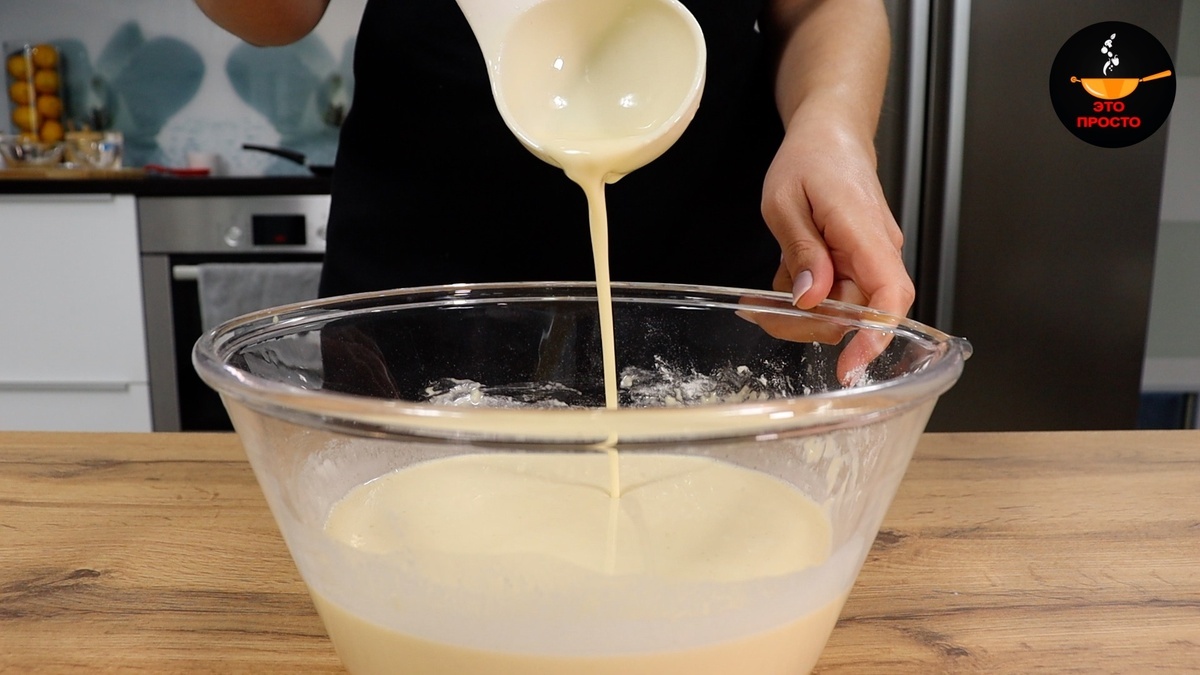 Консистенция готового теста — жидкая, напоминающая жирные сливки или нежирную сметану.