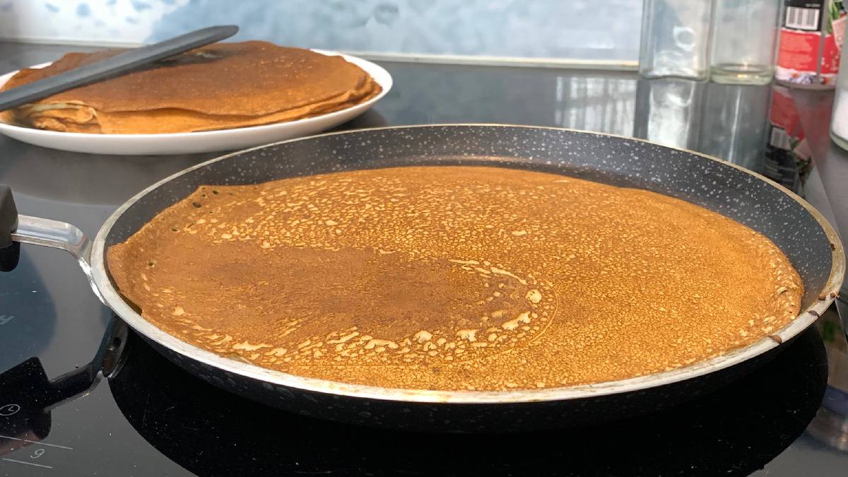 - Оптимальное время жарки каждой стороны — 1-2 минуты, чтобы блины не пересохли.