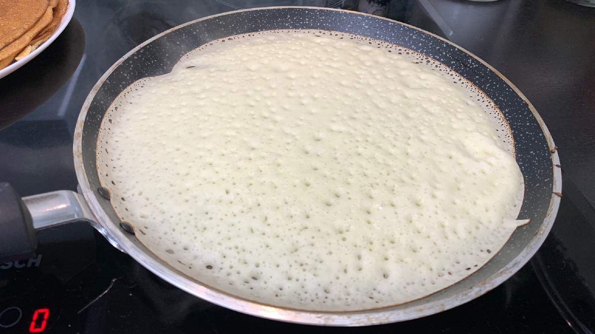 - Убедитесь, что сковорода раскалена, прежде чем наливать тесто для первого блина.