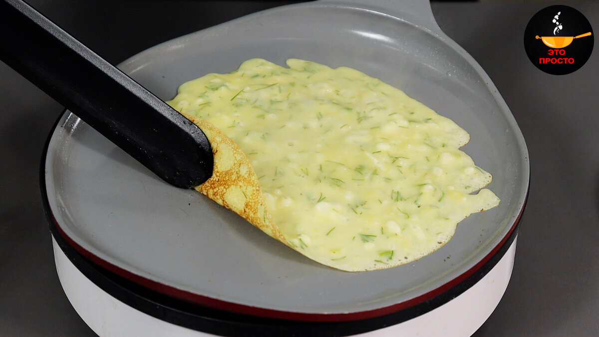 Выпекайте на среднем огне до появления пузырьков на поверхности и подрумянивания краёв (около 1-2 минут).