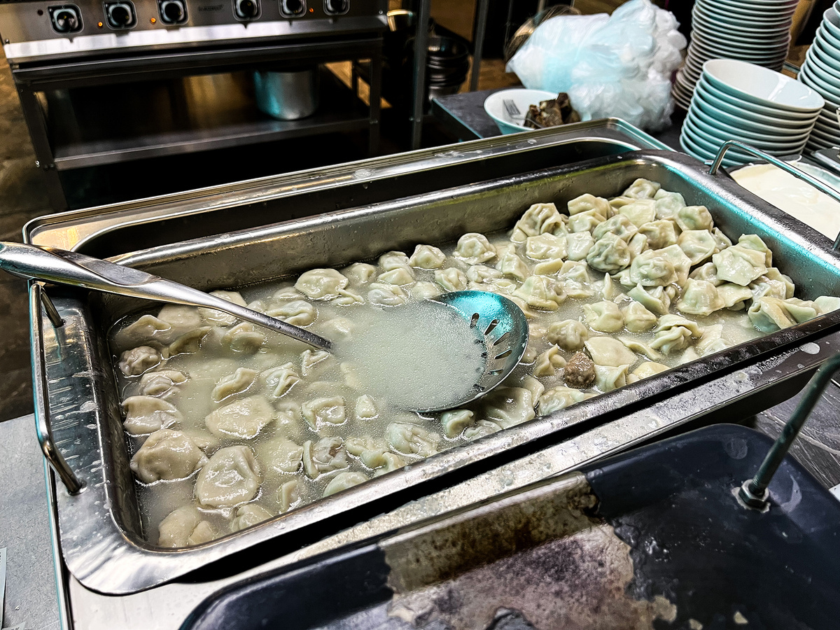 Меню, распечатанное на листах А4, поражает демократичными ценами с копейками. Даже при большом аппетите сложно оставить здесь больше тысячи рублей. Самыми дорогими позициями являются окрошка и плов, которые, впрочем, часто оказываются в стоп-листе. Парадоксально, но при таком названии заведения ассортимент пельменей крайне скуден — только отварные с мясом. Их можно дополнить бульоном, зеленью или маслом за отдельную плату. Несмотря на все тревожные звоночки, я решила провести полноценную дегустацию и заказала шесть позиций.